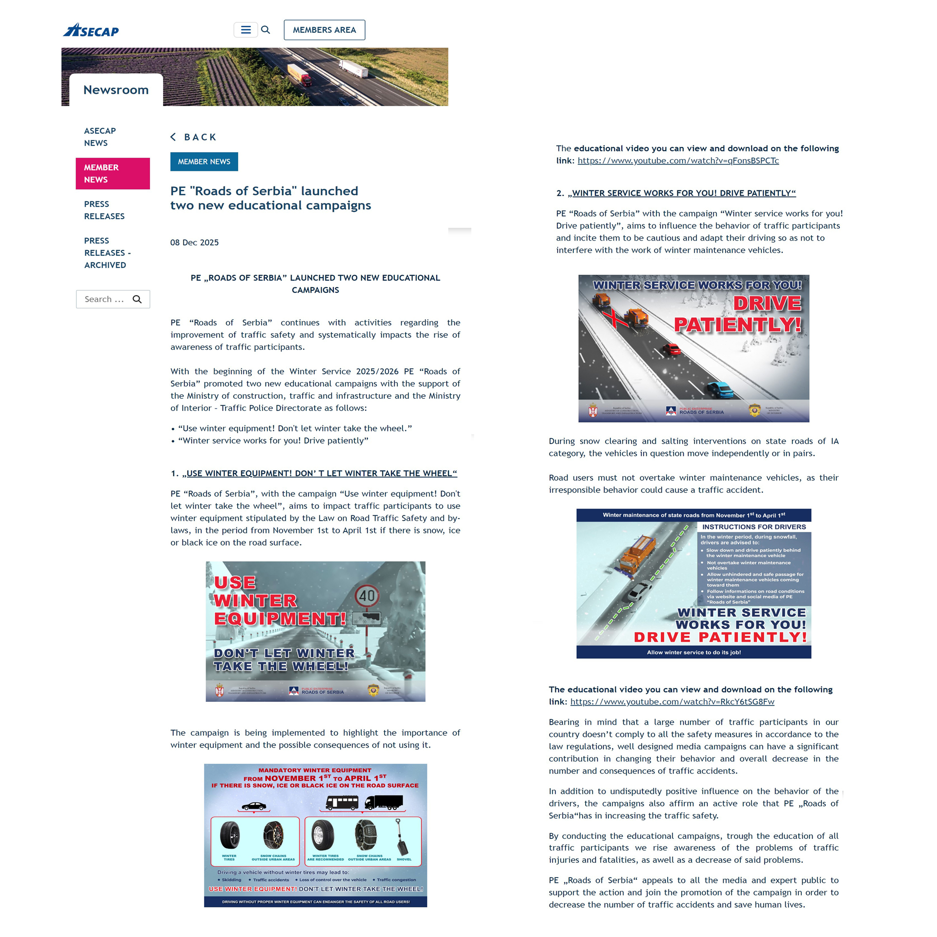 The news was published on the ASECAP - Member News page with our representative photos, visuals and video material, link ASECAP Member News