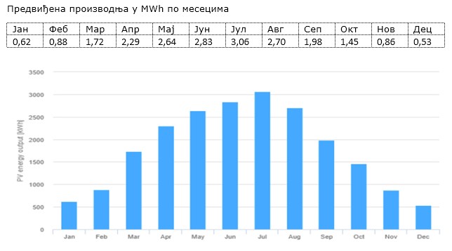 Предвиђена производња у MWh по месецима: