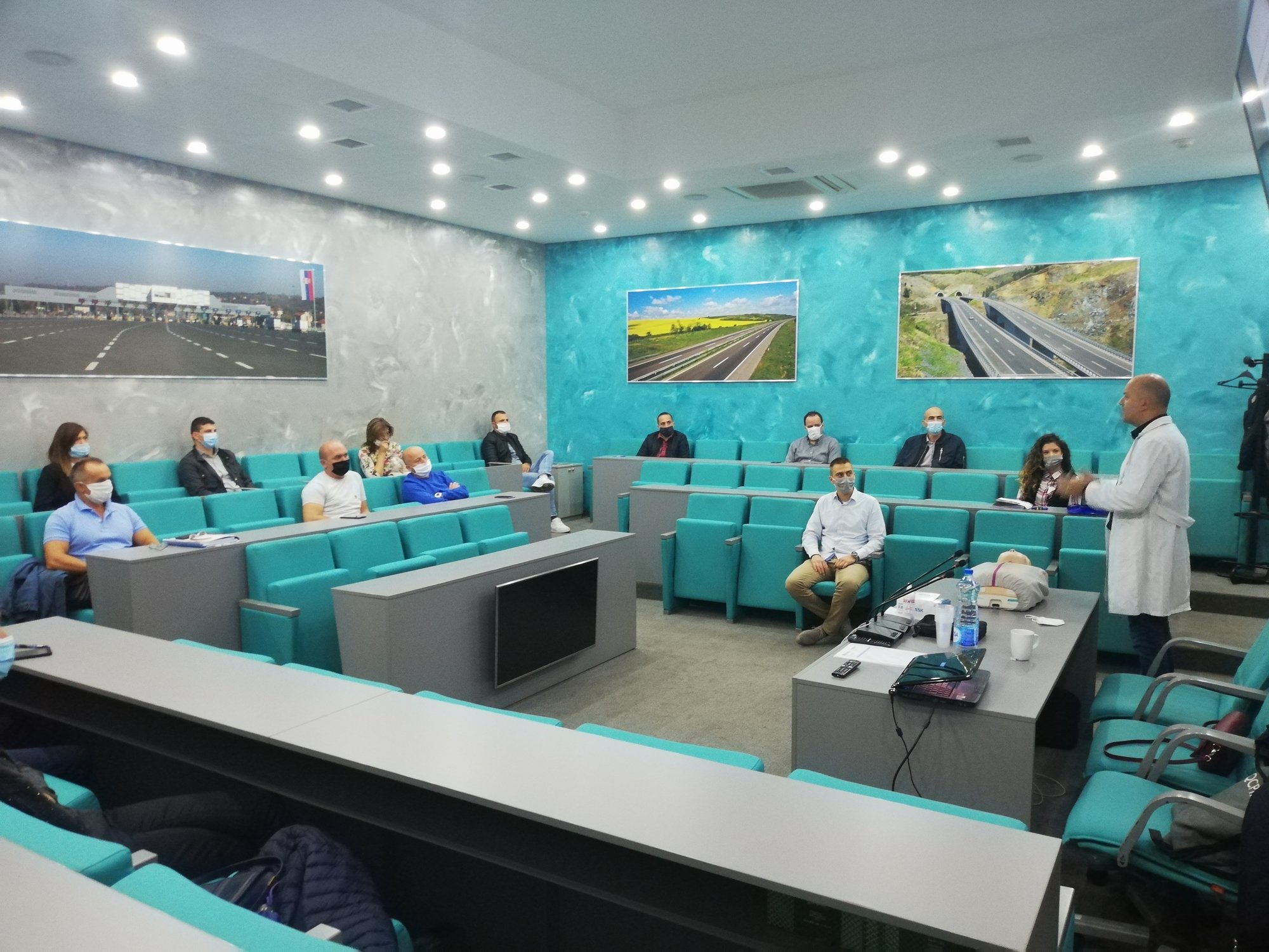 This is the third year of the PE “Roads of Serbia” and the Department for Safety, Health, Fire Protection and Rescue at Work first aid training. The previous two years saw the training of more than 800 employees who perform their duties in the field (toll stations, tunnel operational centres…) and of the employees in the business facilities.