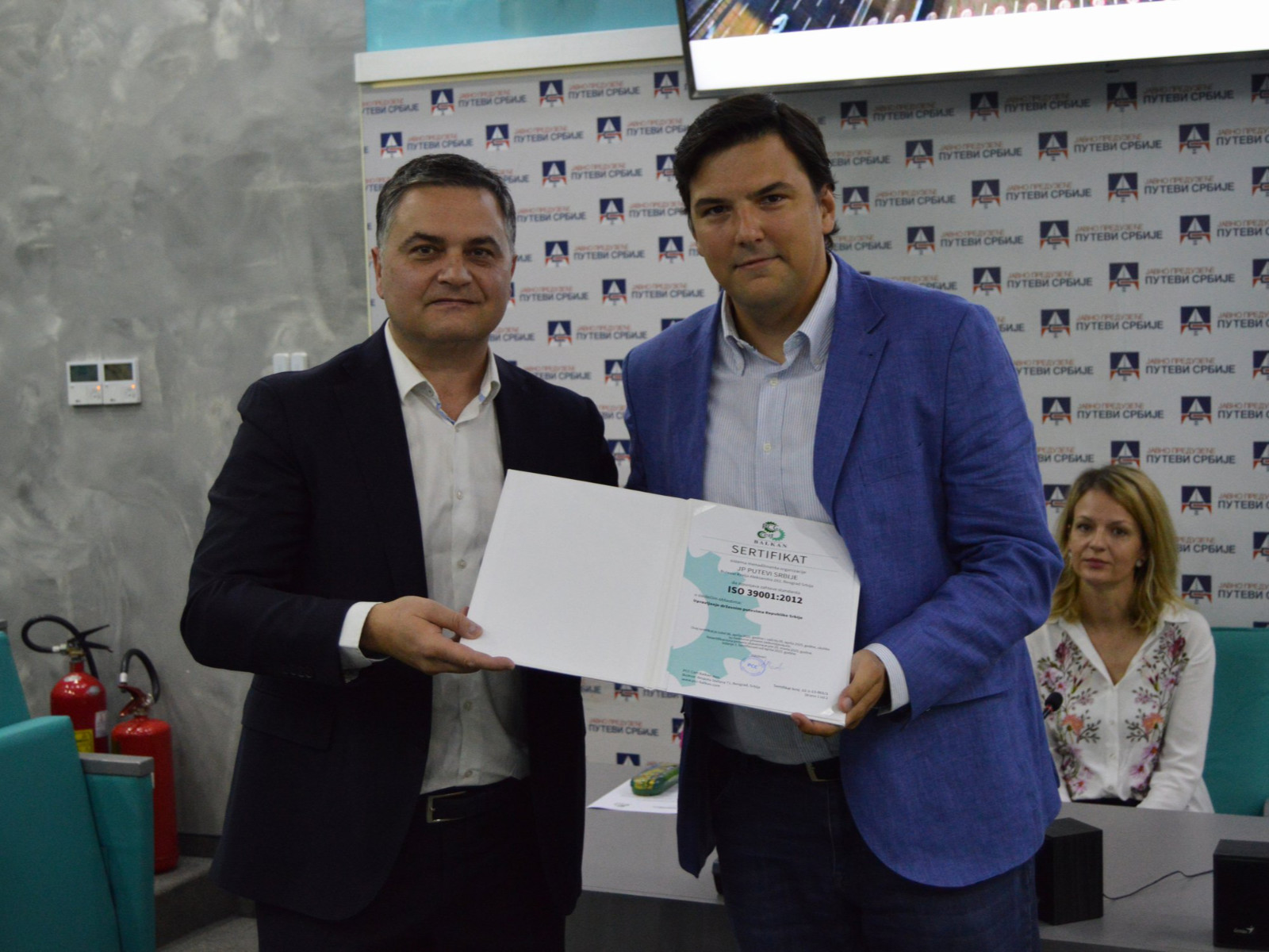 Details from the certification awarding ceremony are available at the following link: 06.05.22. Putevi Srbije dobitnik međunarodnog sertifikata za Sistem upravljanja bezbednošću drumskog saobraćaja