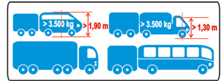 vans with two axles and total height over 1.9 m, with maximum allowed mass up to 3,500 kg with trailer