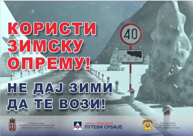 Edukativnom kapanjom „Koristi zimsku opremu! Ne daj zimi da te vozi!”, JP „Putevi Srbije“ želi da utiče na učesnike u saobraćaju da u periodu od 1. novembra do 01. aprila koriste zimsku opremu predviđenu Zakonom o bezbednosti saobraćaja na putevima i podzakonskim aktima ukoliko se na kolovozu nalaze sneg, led i poledica.