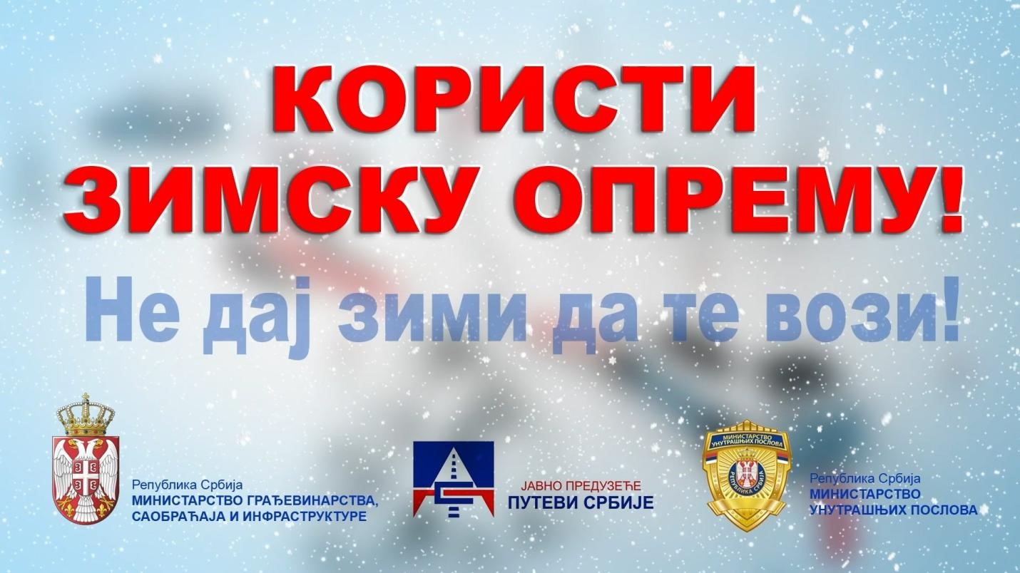 Едукативном кампањом “Користи зимску опрему! Не дај зими да те вози!”, ЈП „Путеви Србије“ жели да утиче на учеснике у саобраћају да у периоду од 1. новембра до 01. априла користе зимску опрему предвиђену Законом о безбедности саобраћаја на путевима и подзаконским актима уколико се на коловозу налазе снег, лед и поледица.